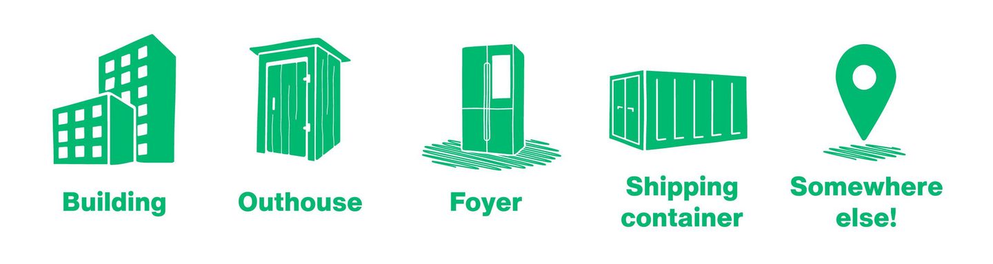 Community fridges can live in all sorts of buildings and structures. Depending on the space and facilities you have available, consider the following: