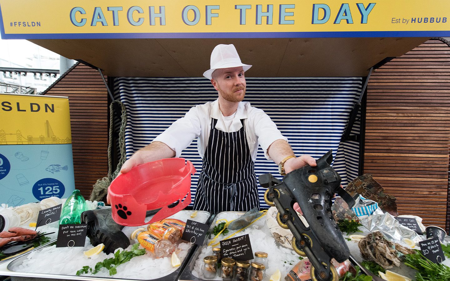 After the success in a central, touristy area, we were interested to see if similar approaches could work in a more residential area. So, in 2018 #FFSLDN made its way upstream to Putney! This time featuring a faux ‘Fishmonger’ displaying freshly caught litter and voting bins, alongside eye-catching messaging on railings and lampposts.