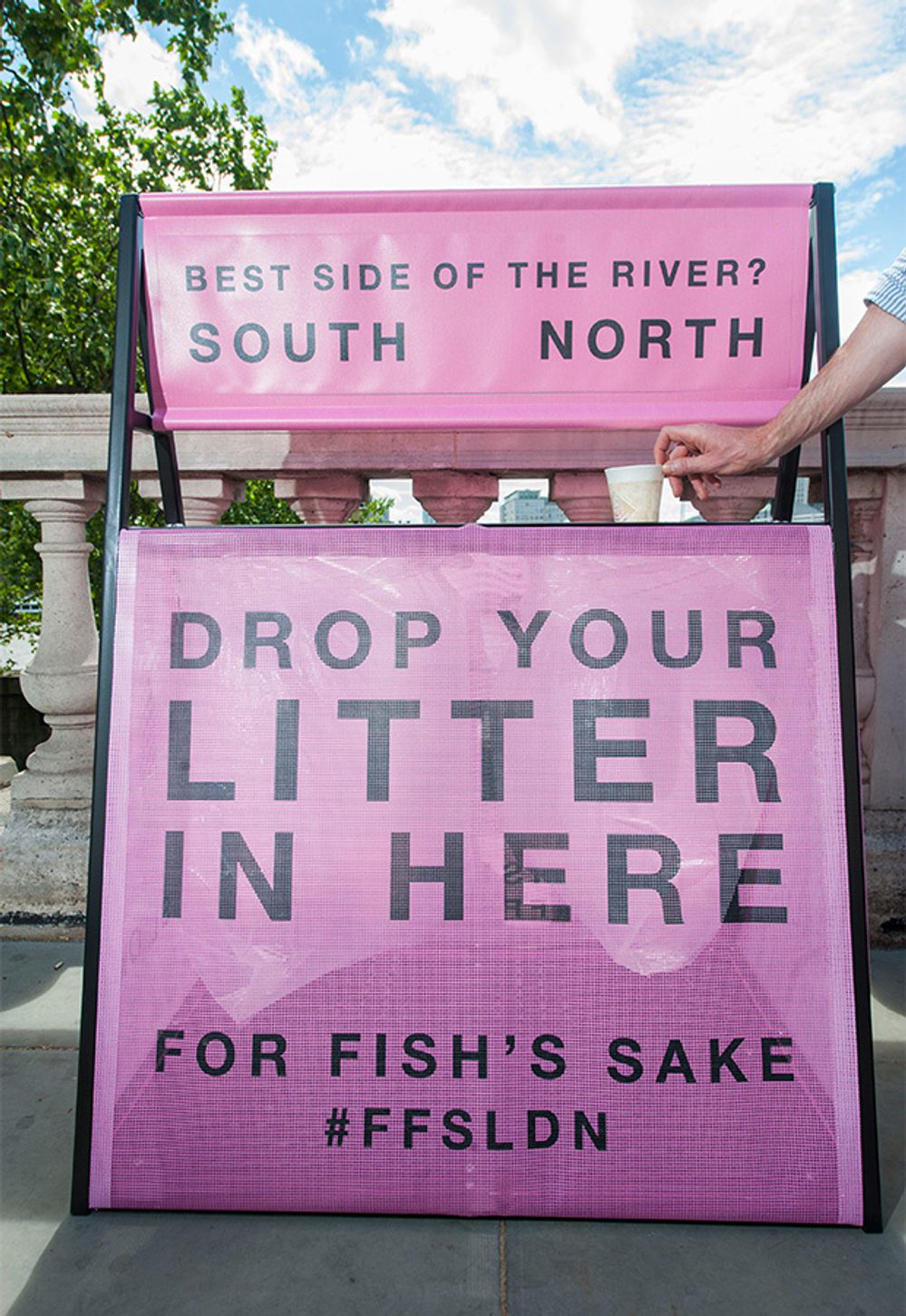 Are you flippin’ frustrated about litter? Us too...'For Fish’s Sake (#FFSLDN)' launched in 2017 to explore new ways of tackling riverside littering, using bright messaging and playful interventions to grab attention about this fishy issue.