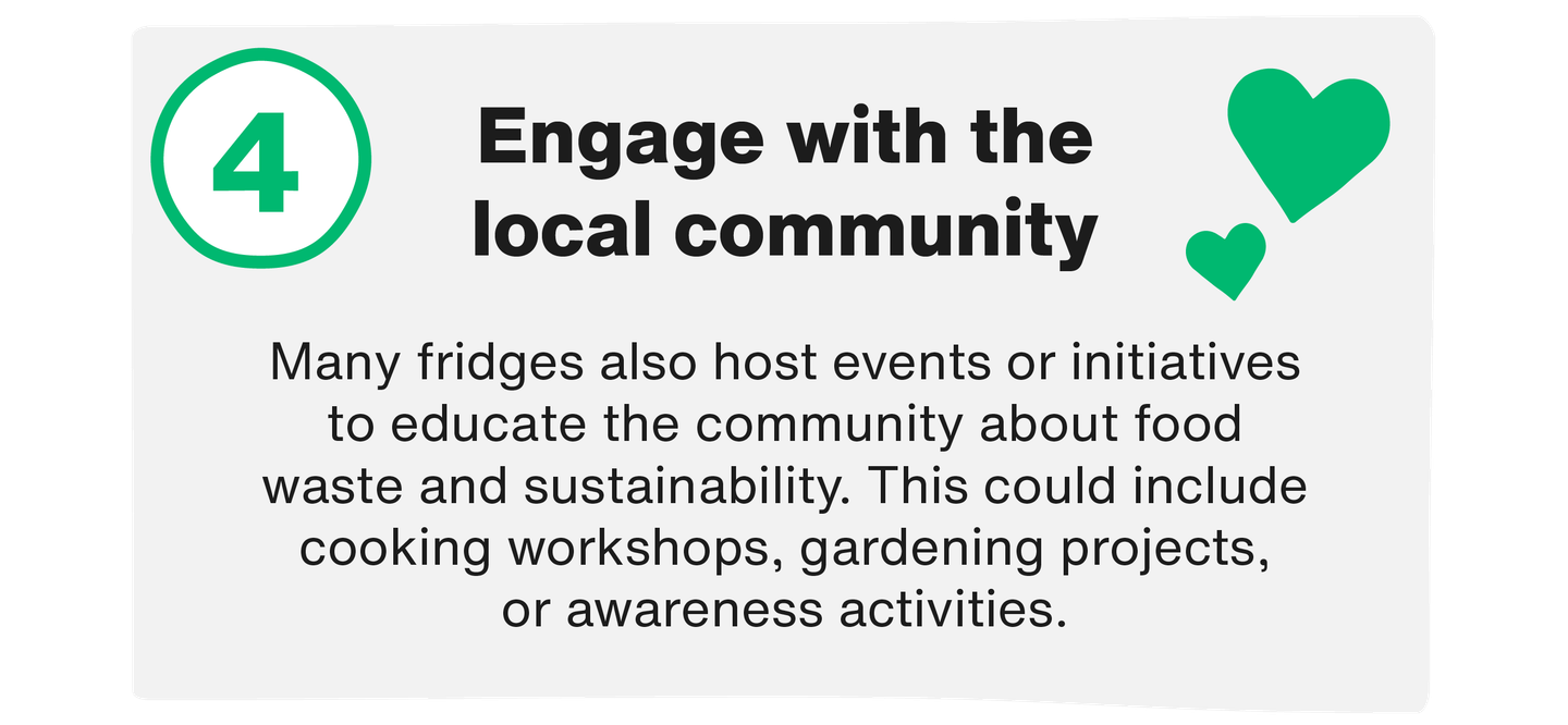 Get access to training workshops and activities for you and your team to learn everything you need to effectively run and manage your community fridge.